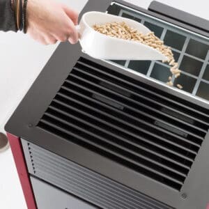 Wyposażony w zaawansowany mechanizm zamykający, piecyk otwiera się jednym naciśnięciem przycisku, co podkreśla jego nowoczesną funkcjonalność. Wnętrze wyłożone wermikulitem oraz pojedynczy regulator powietrza zapewniają wydajny proces spalania o sprawności aż 80%, jednocześnie ograniczając emisję cząstek.