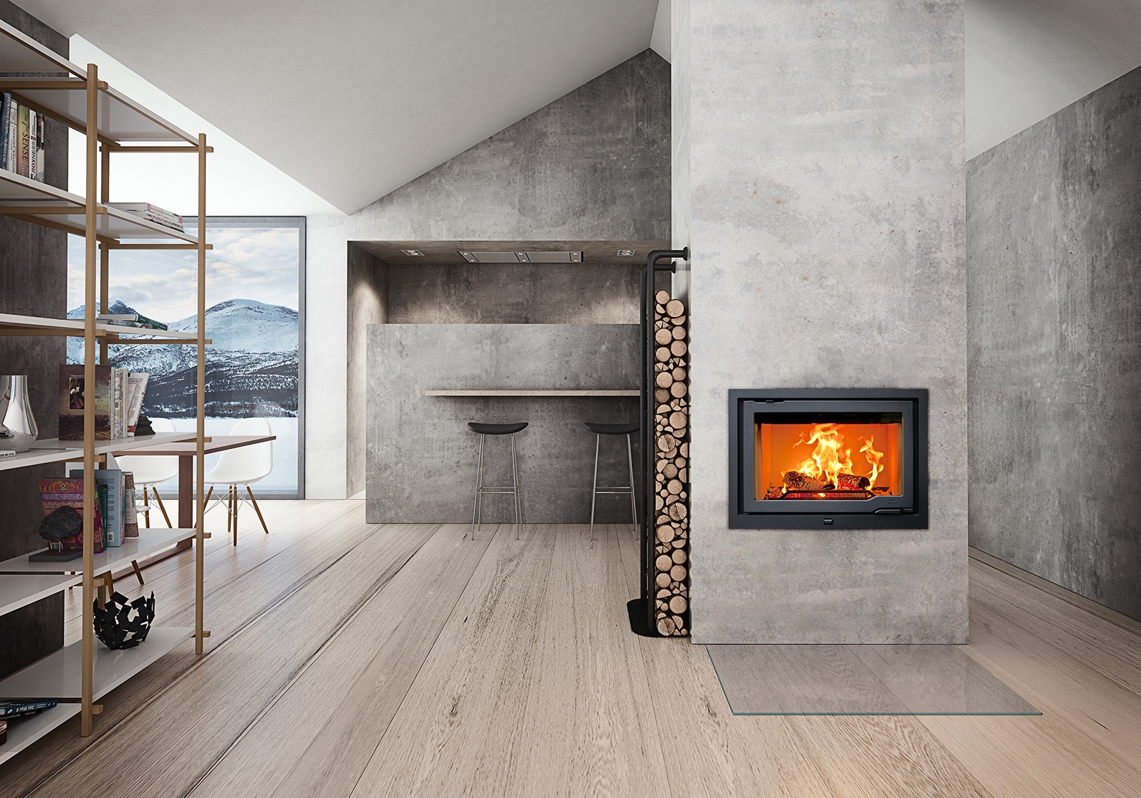 Jøtul I 570 Flat to duży, żeliwny wkład kominkowy na drewno, który wyróżnia się nowoczesną stylistyką i doskonale pasuje do różnorodnych rodzajów zabudowy. Płaska, pozioma szyba w drzwiach zapewnia szeroki widok na ogień, tworząc przytulną atmosferę w każdym wnętrzu.